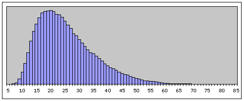 Values can range from 0 to 100, but values below 12 or above 50 are quite rare.